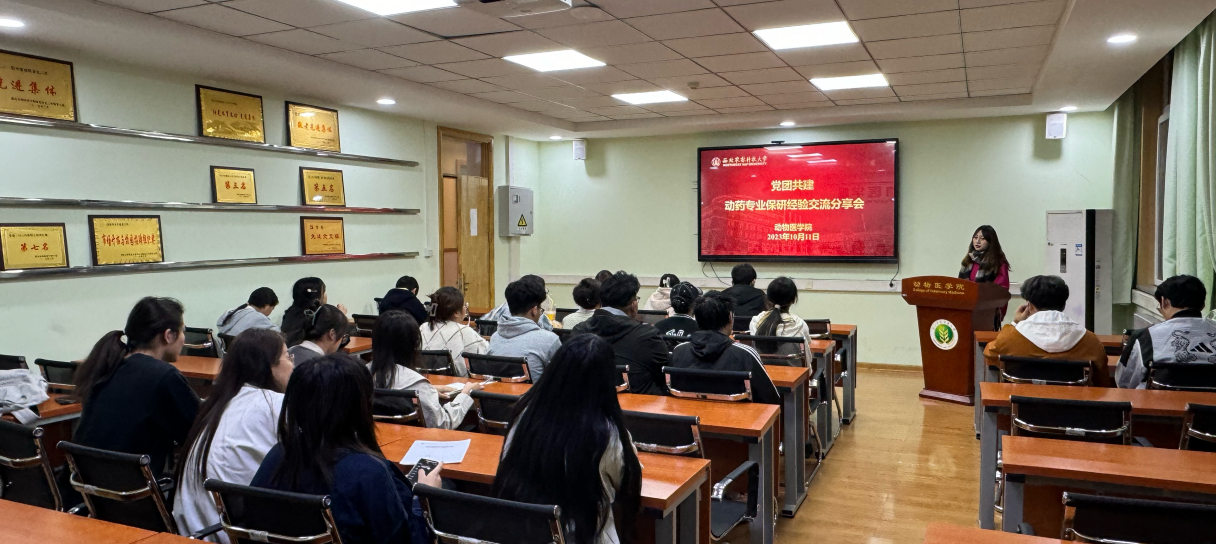 大学生第一党支部动物药学专业20级保研的优秀学生为低年级学生分享保研过程中关于学习、科创、竞赛等方面的经验:刘欣瑜解读了保研政策的加分项,介绍了卓越农林本硕博学生的“4+1+X”的形式;余娅侧重讲述了自己在各校参加夏令营以及选择研究生方向与导师的经历;王鹏乐、罗颖、赵昕钰结合自身经历,从大学生科创、学科竞赛、夏令营的准备等多方面细致地向学生分享了自身的方法和经验,以“党建带团建,团建促党建”的工作思路,以保研学生党员为核心,以经验分享交流会为切入点,实现党建团建共发展,让低年级学生对专业前景有更清晰的认知,加强学生的专业认可度。
