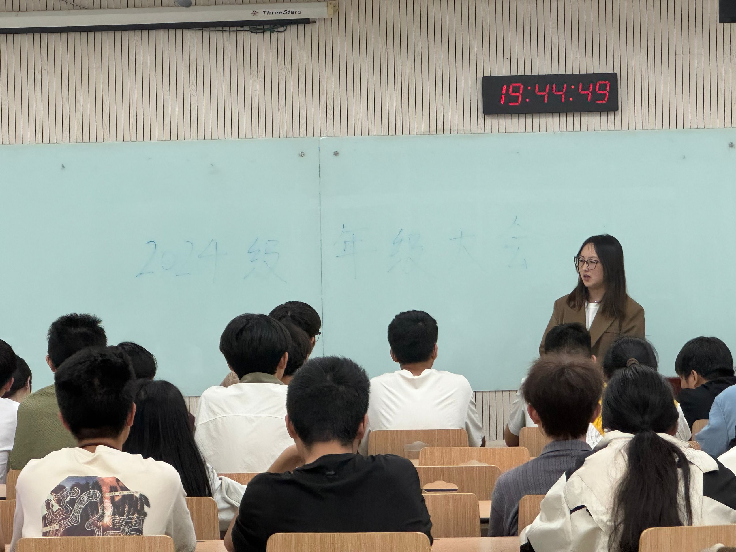 为切实做好假期学生安全教育管理工作,引导学生增强安全意识、规范网络行为、科学规划学业,4月28日晚2024级召开年级大会。会议由2024级辅导员万畅主讲,全体2024级本科生参会。
