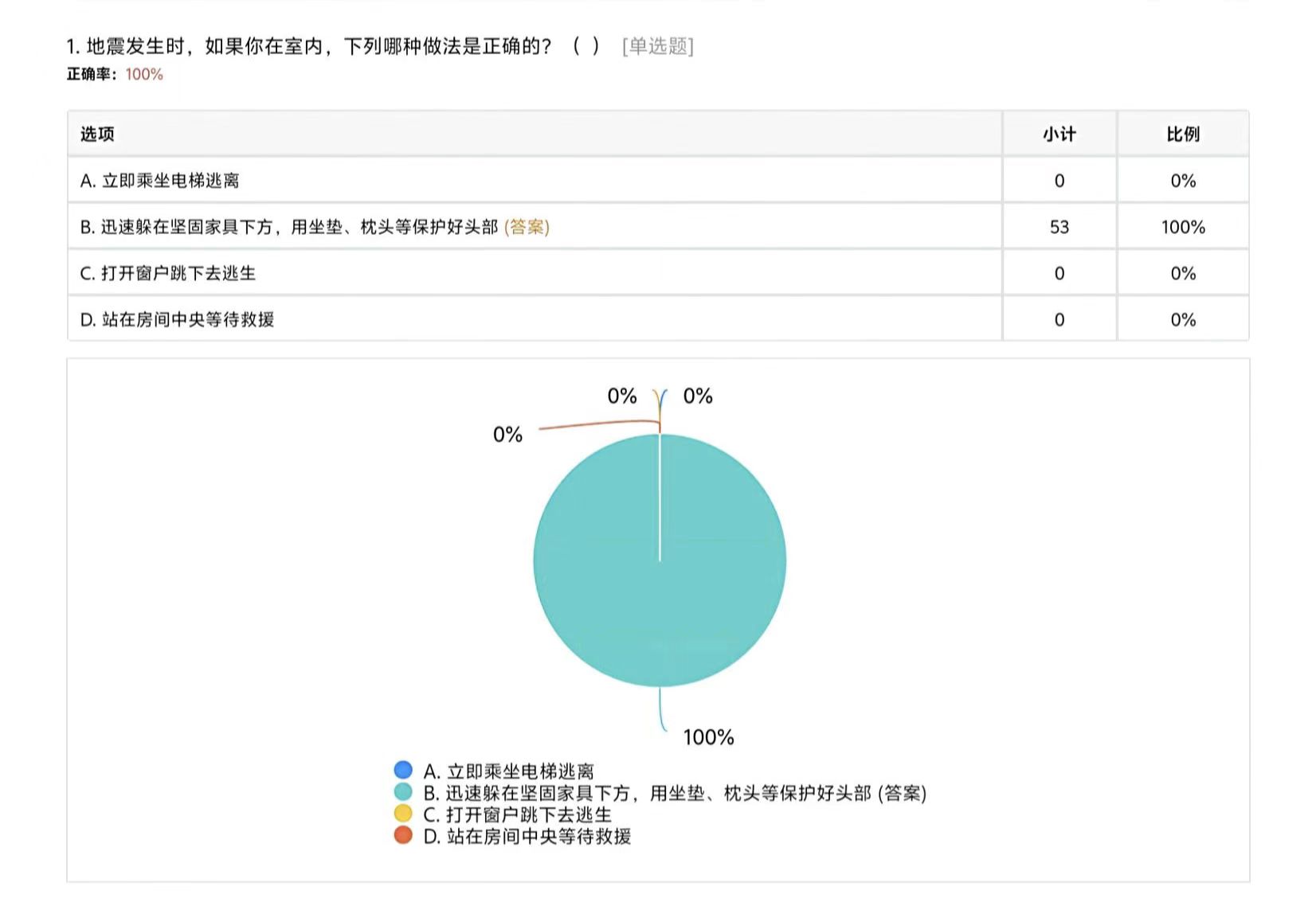 活动依托学院官方平台,设置涵盖网络安全、日常生活安全、应急避险等领域的10道选择题,每道题都是毕业生可能面临的真实挑战。参与者需在固定时间内完成单题作答,系统实时反馈解析并累计积分。数据显示,两日内共有53名毕业生参与答题,90%的习题正确率超过90%,甚至有60%的习题达到100%。活动期间,学院积极同步推送相关文章,助力学生巩固学习成果。学院表示:"安全教育是毕业生离校前的重要一课,未来将持续完善安全教育体系。"据悉,37000c威尼斯本年度已开展安全主题活动多场,惠及全体学生,为构建平安校园提供有力支撑。